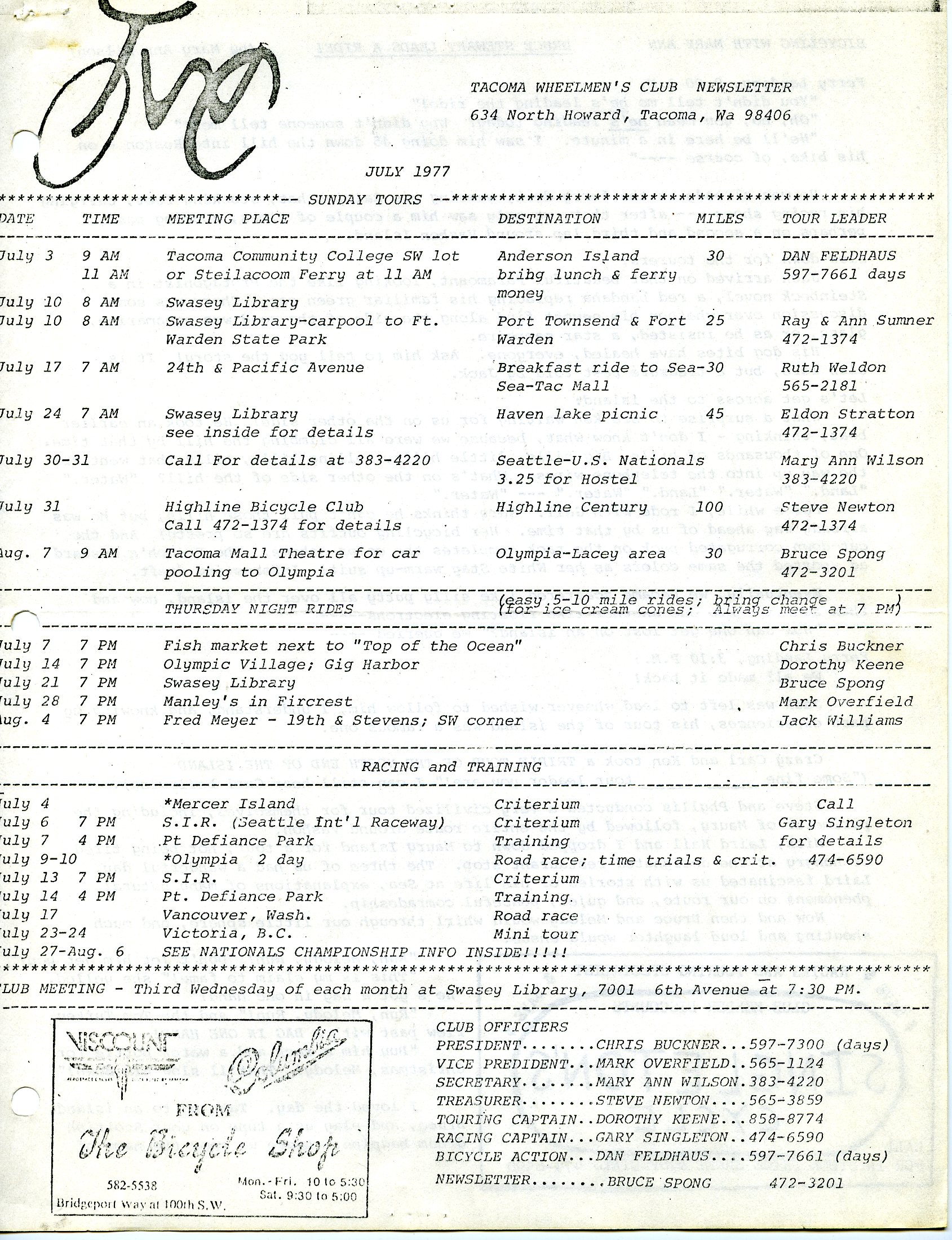 July 1977 Newsletter