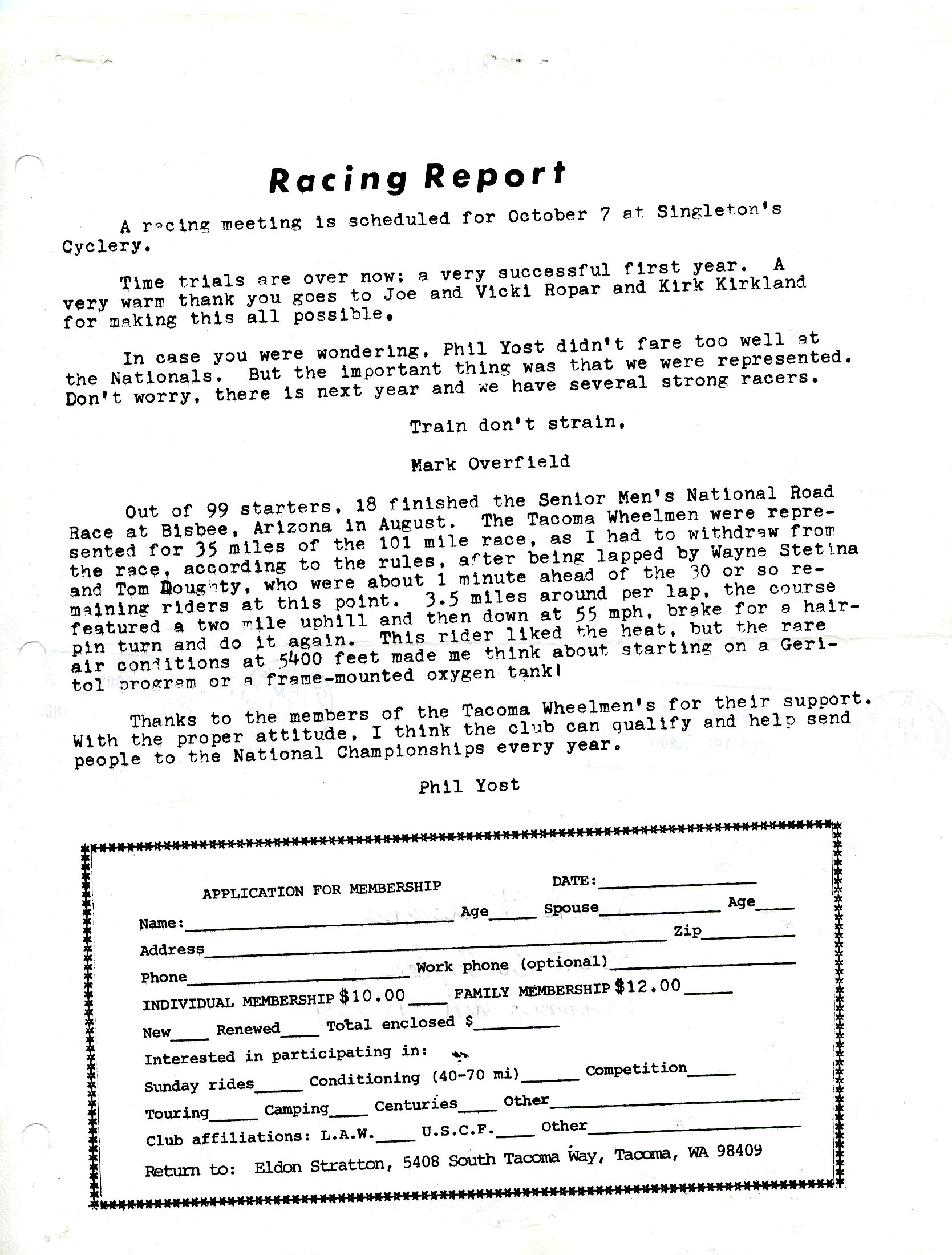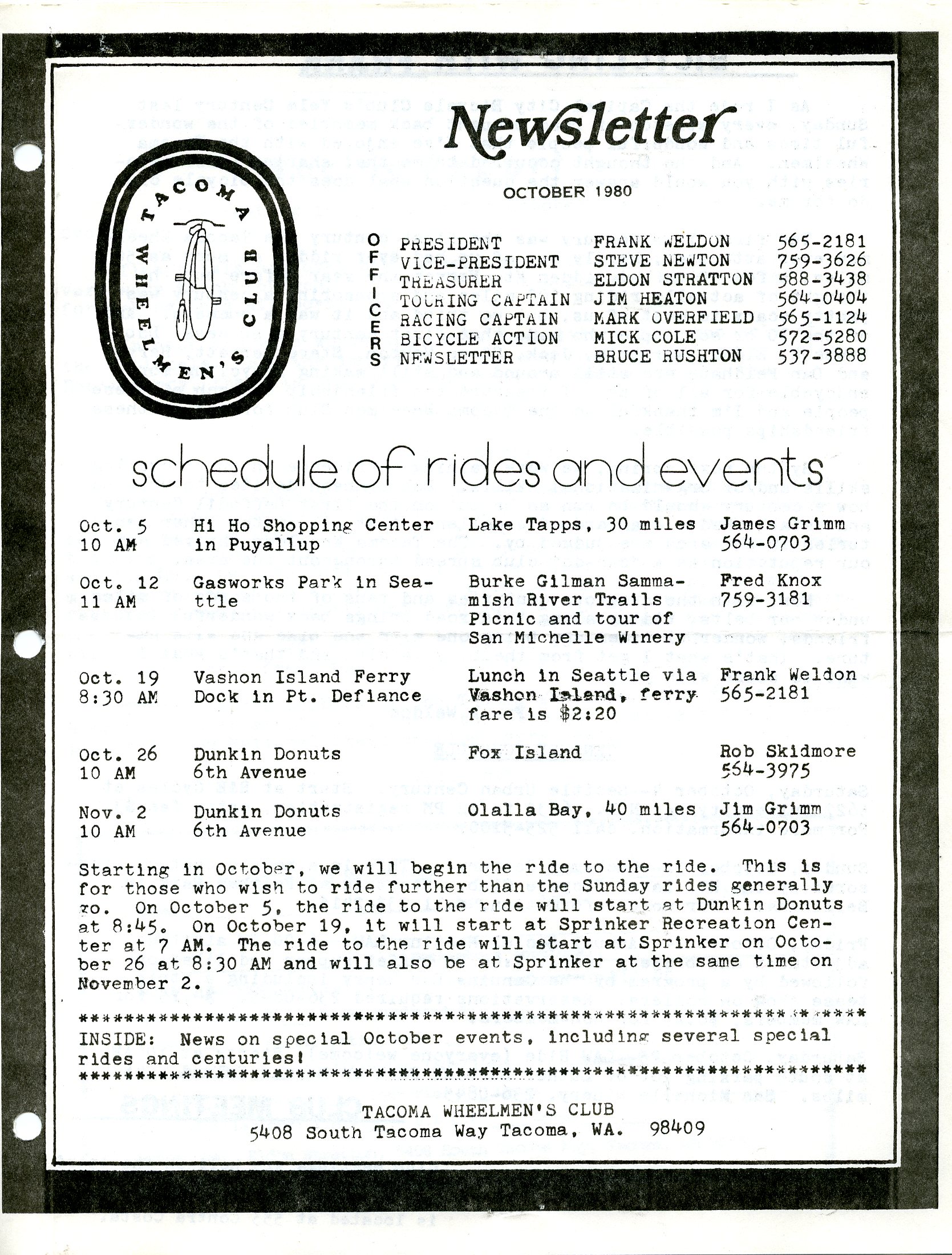 October 1980 Newsletter