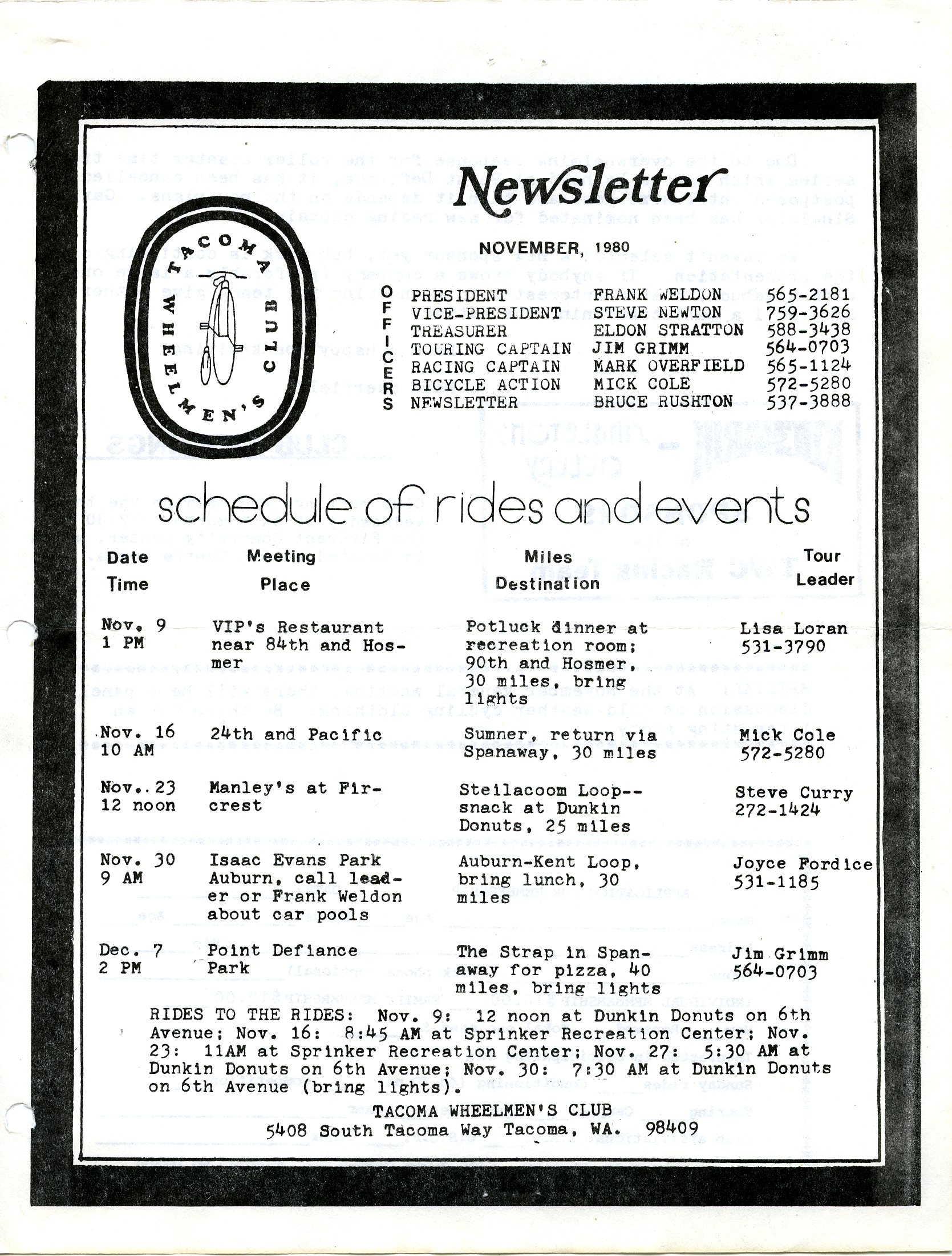 November 1980 Newsletter
