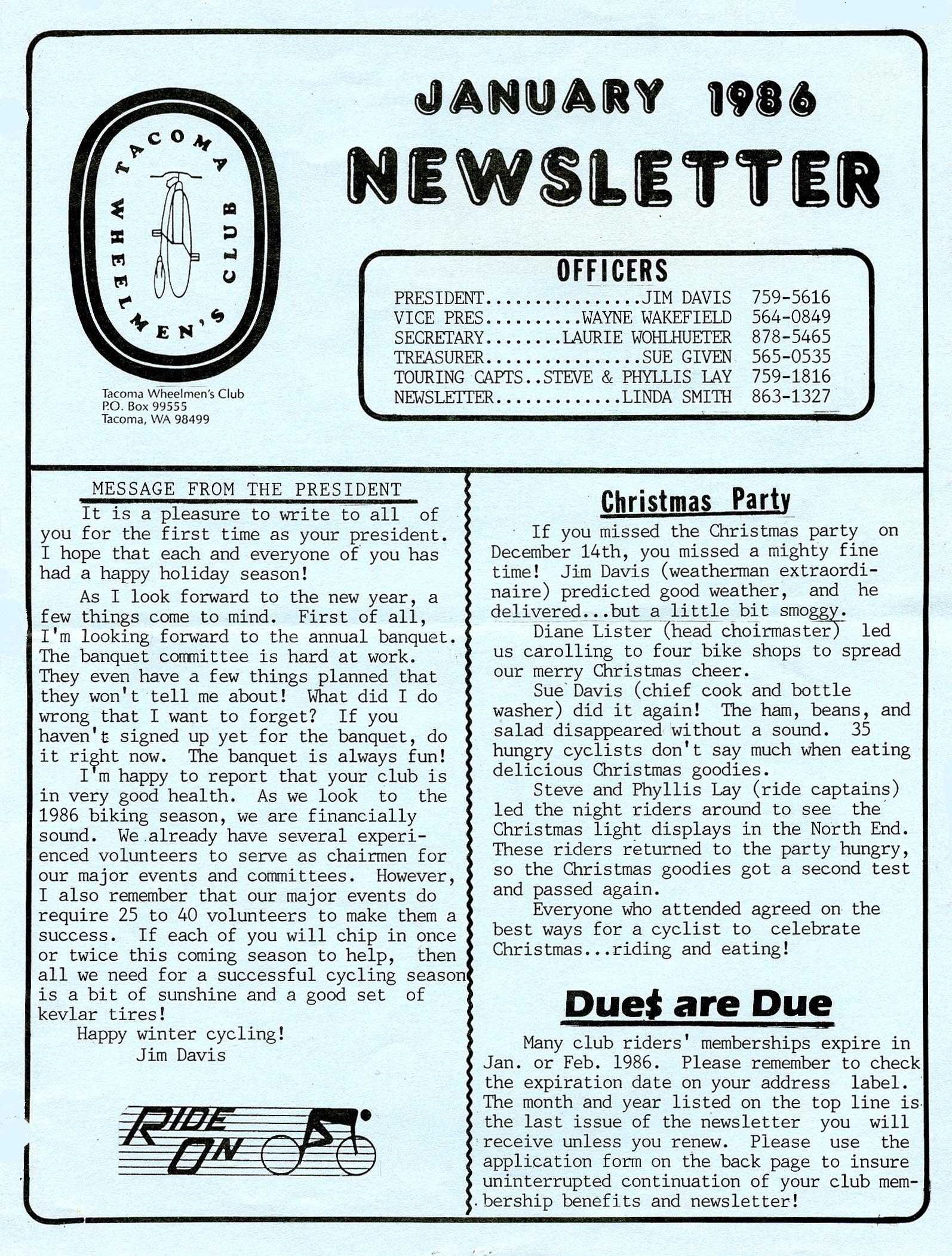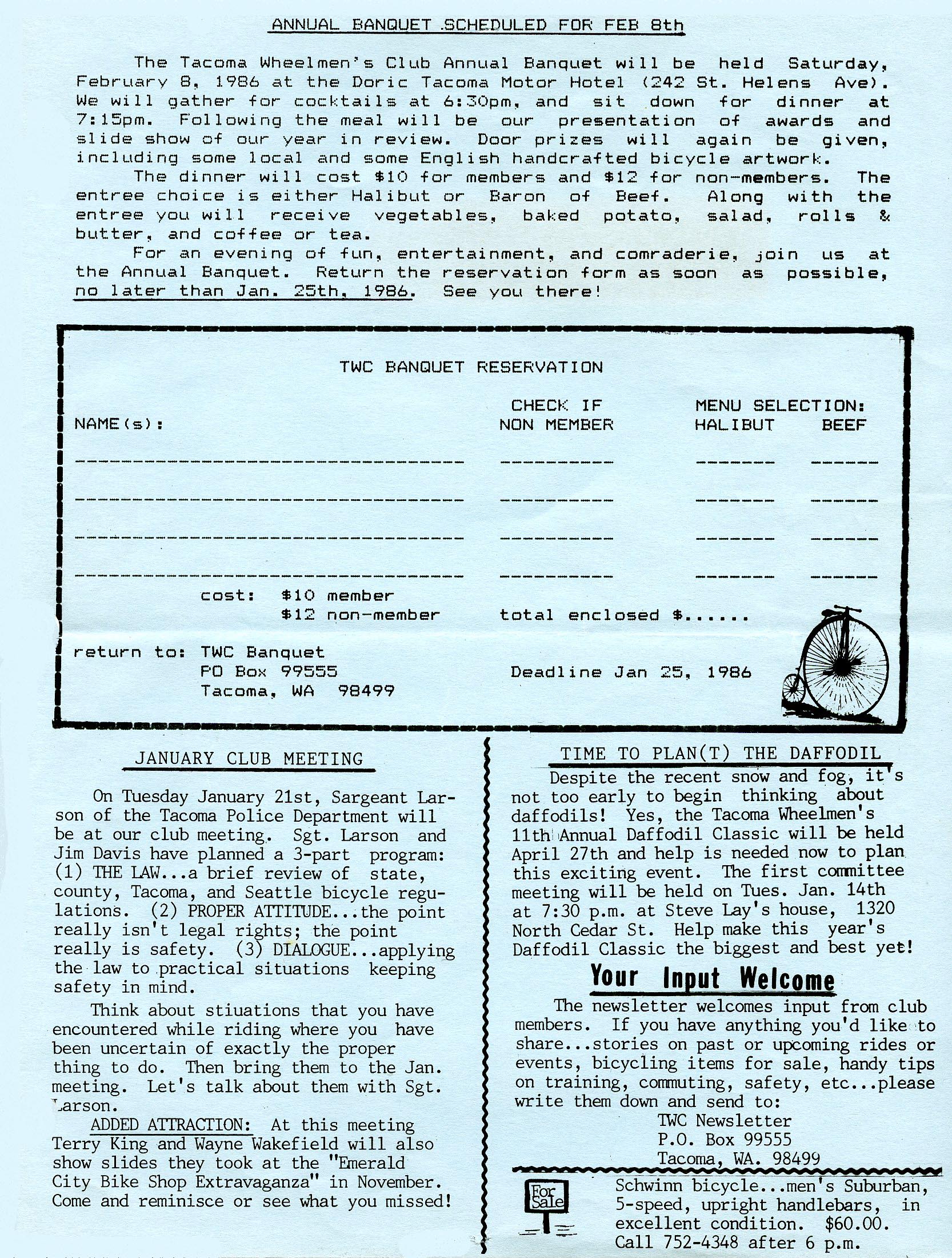 January 1986 Newsletter
