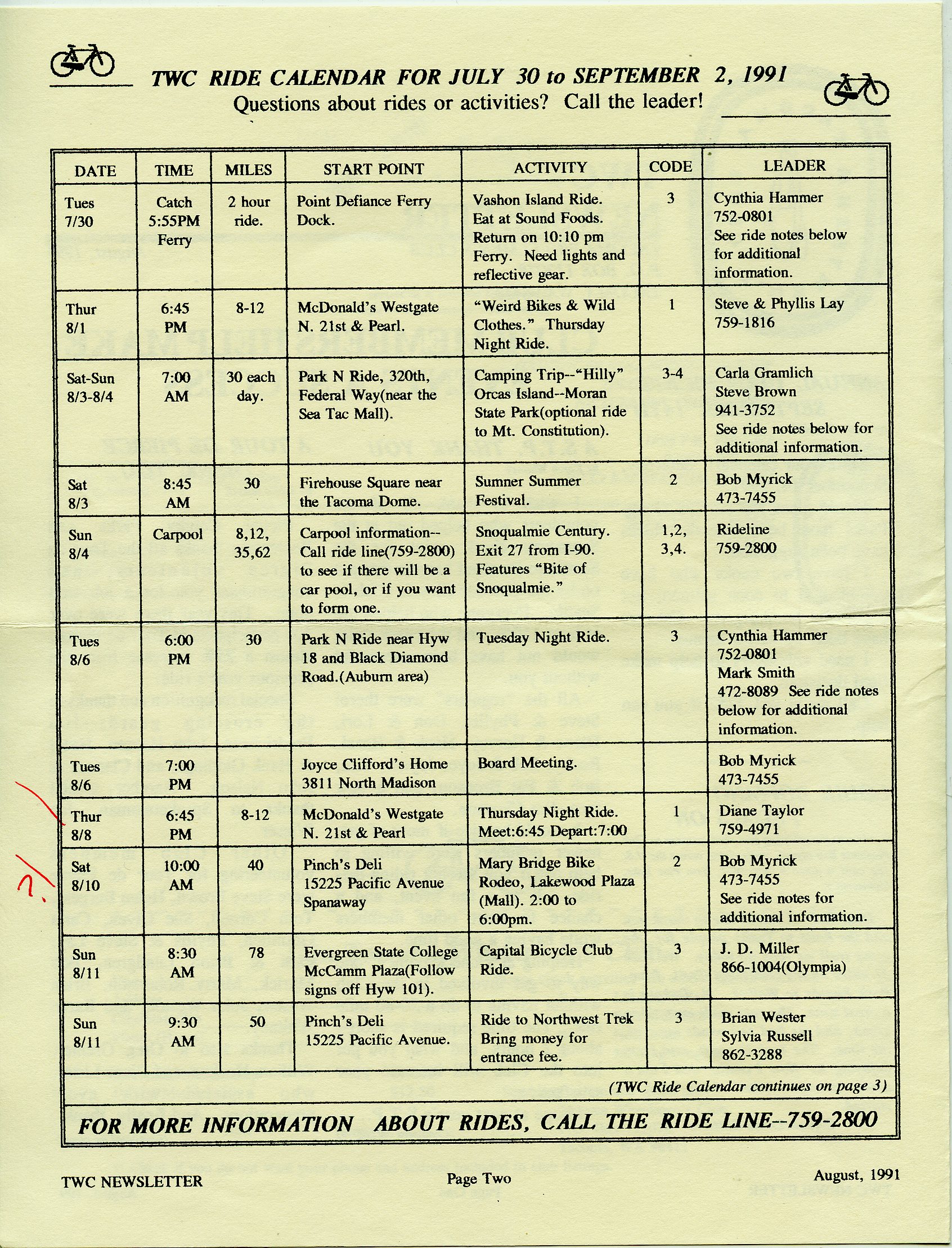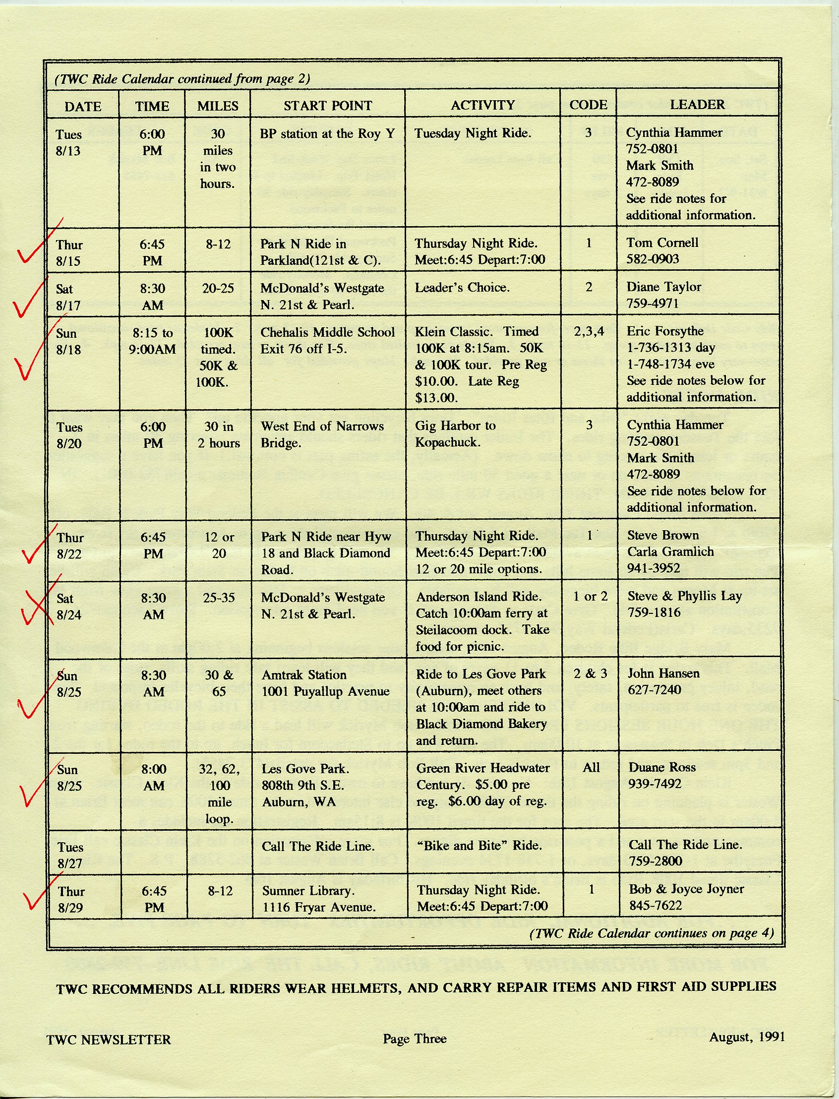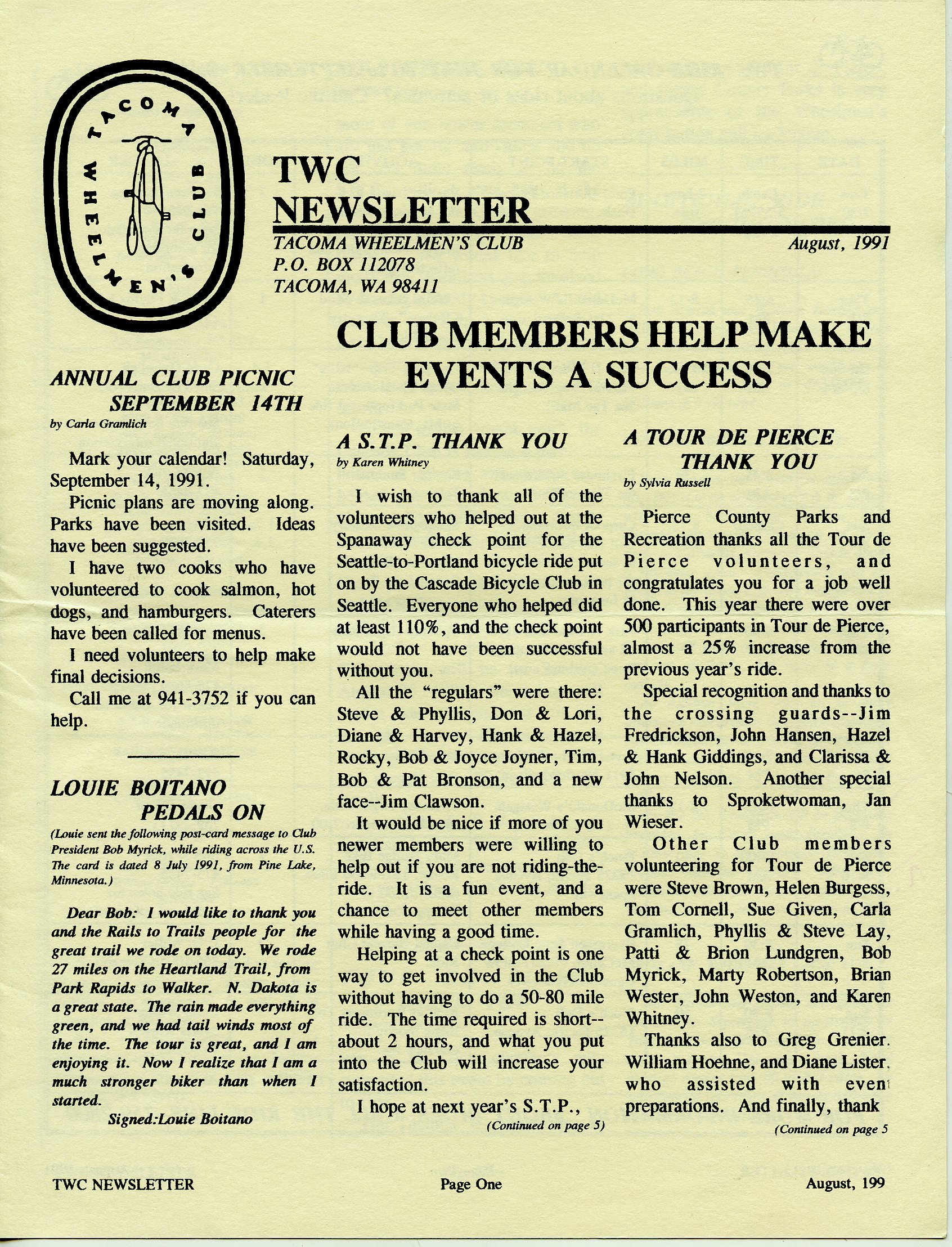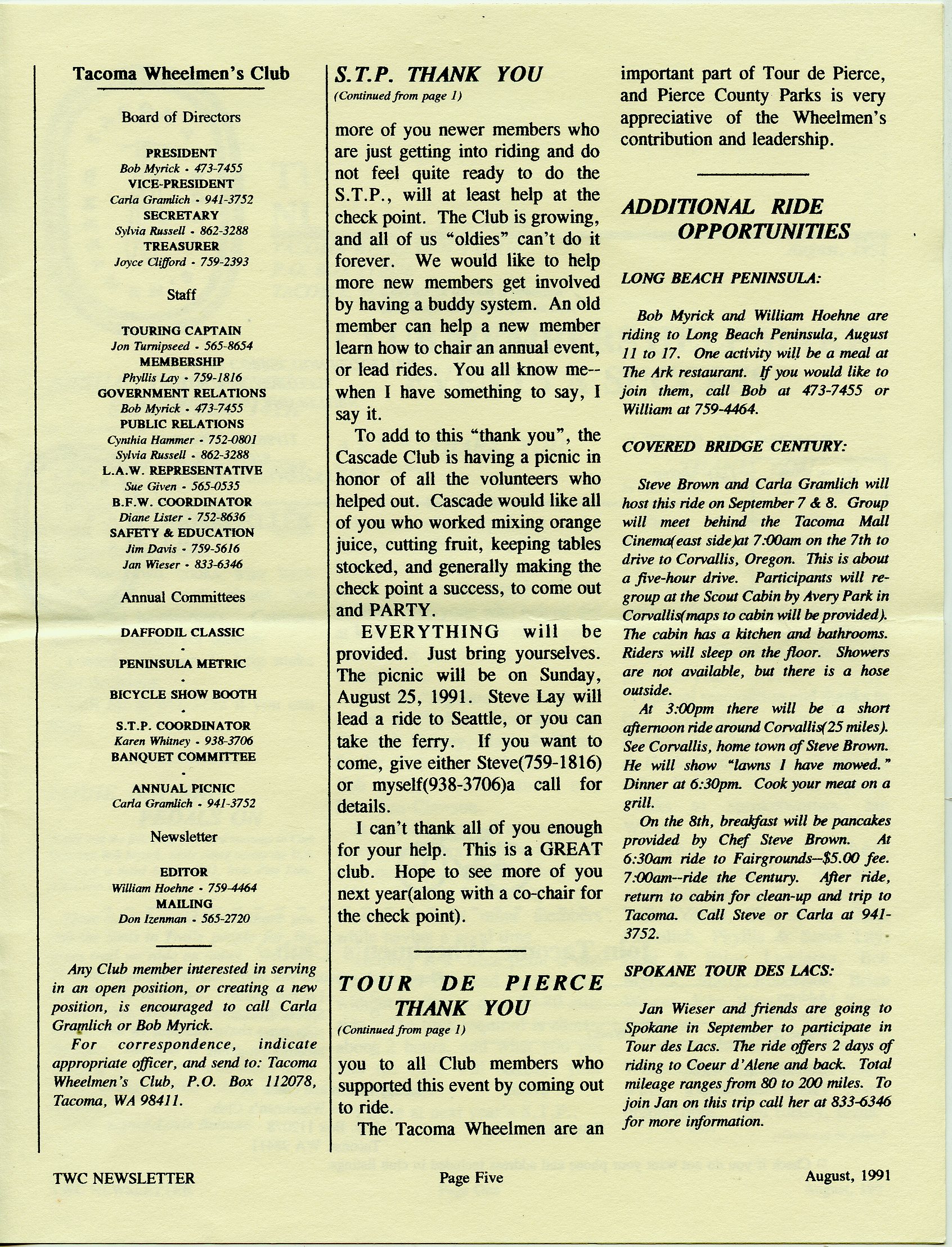 August 1991 Newsletter