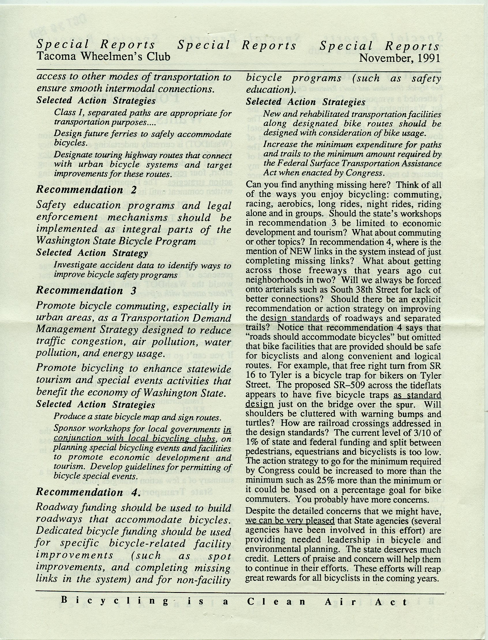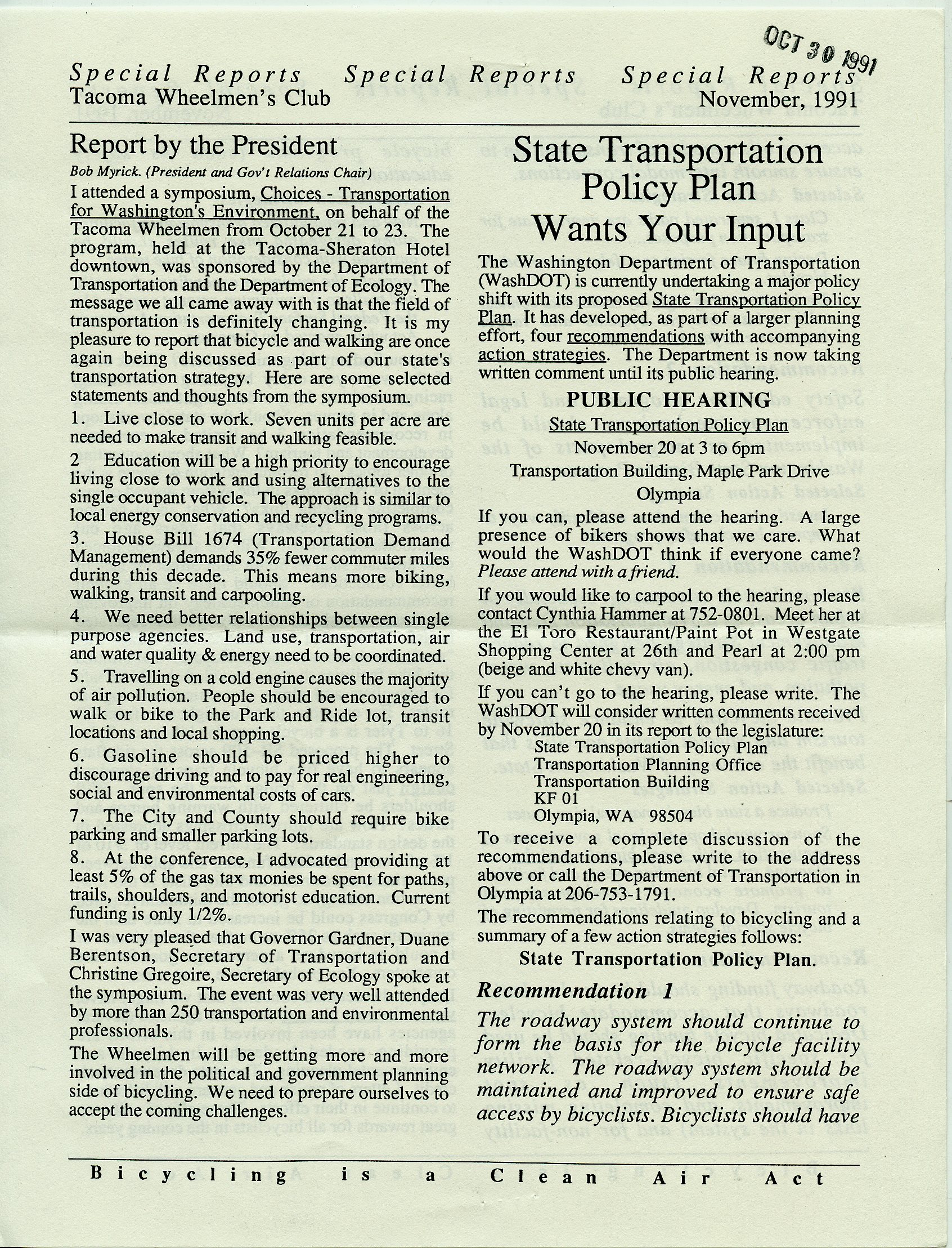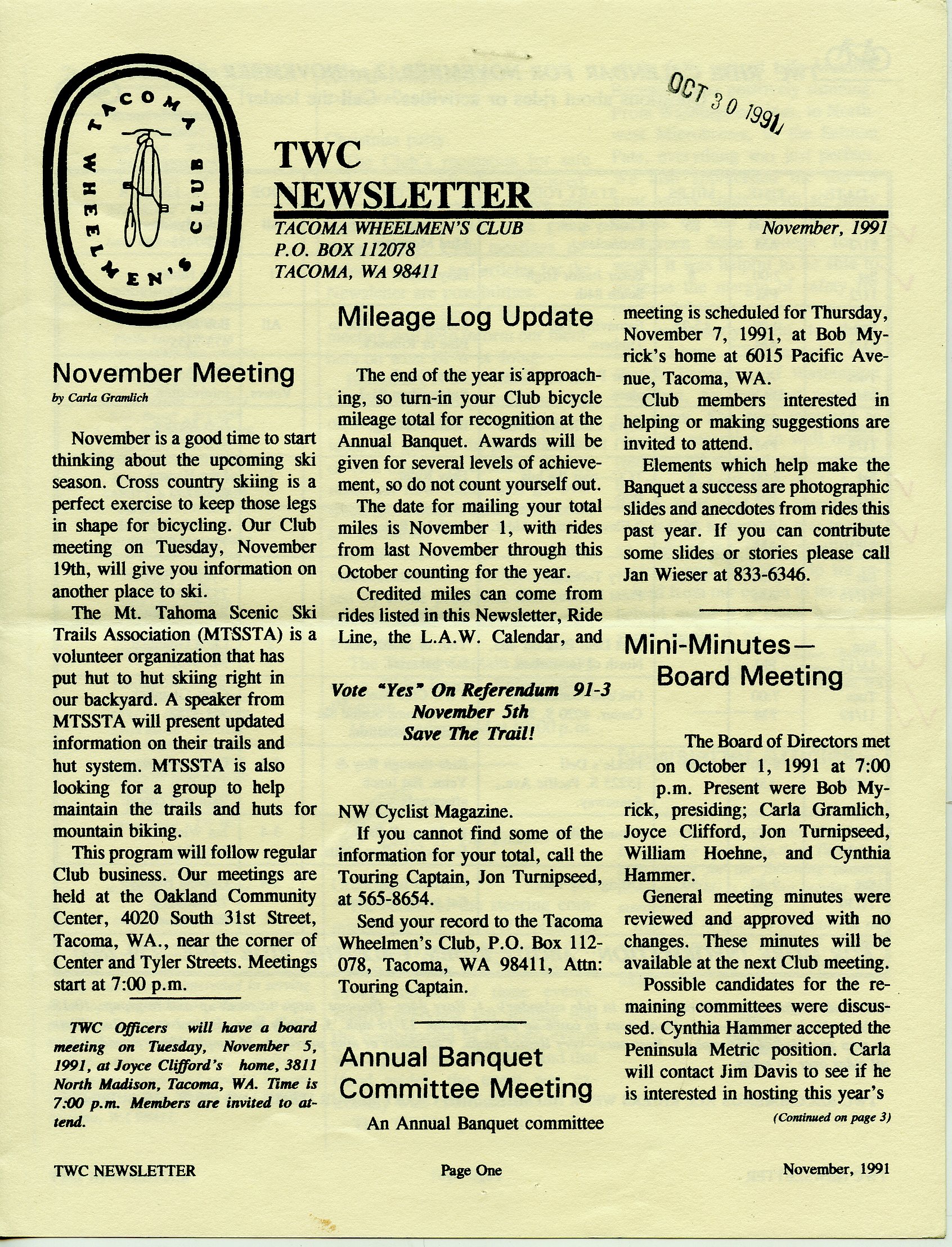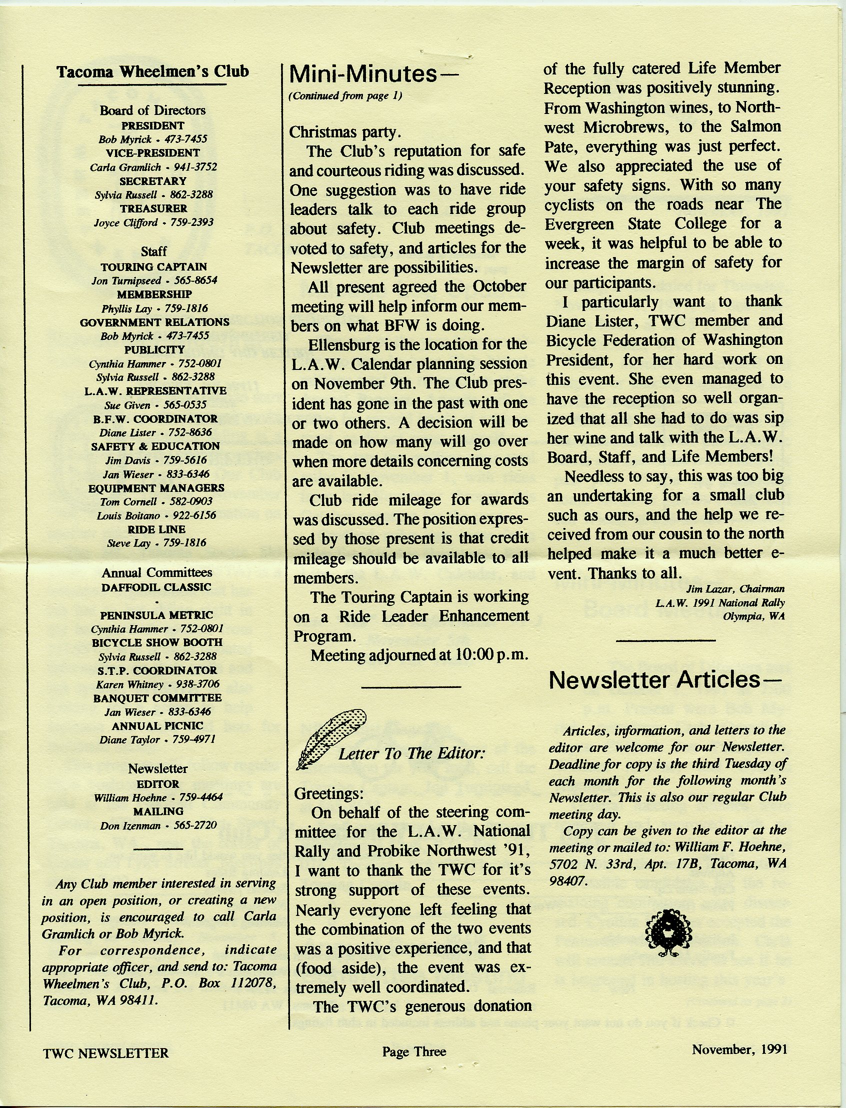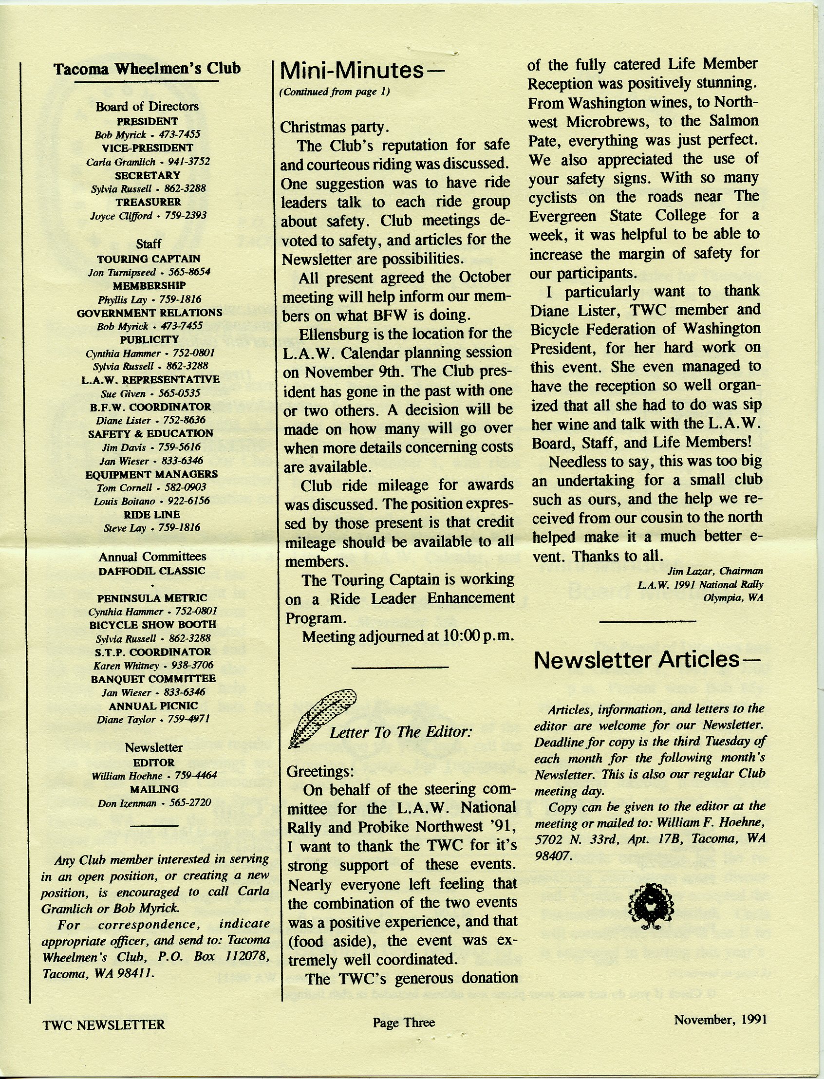 November 1991 Newsletter